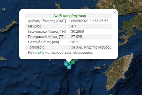 Το επίκεντρο του σεισμού εντοπίζεται στα 34 χιλιόμετρα νότια, νοτιοδυτικά της Νισύρου και το εστιακό βάθος σύμφωνα με το Γεωδυναμικό Ινστιτούτο ήταν στα 16,1 χιλιόμετρα.