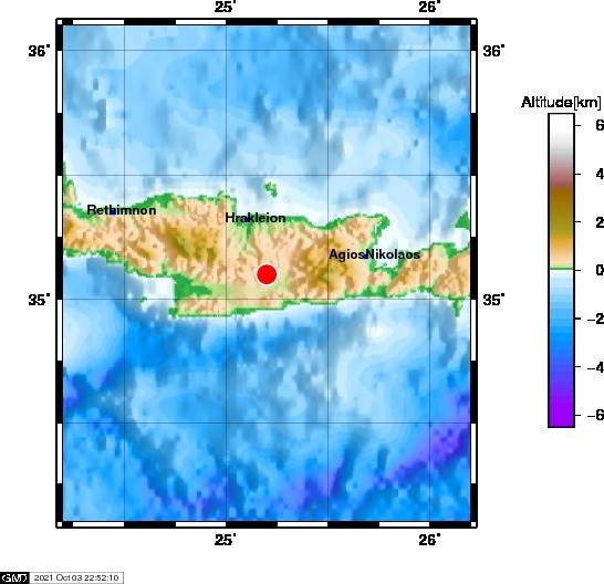 Μετασεισμική δόνηση μεγέθους 3,3 βαθμών της κλίμακας Ρίχτερ, σύμφωνα με την αυτόματη λύση του Ευρωπαϊκού - Μεσογειακού Σεισμολογικού Ινστιτούτου (EMSC), σημειώθηκε στη 01:39 μετά τα μεσάνυχτα (Δευτέρα 4/10), κοντά στο Αρκαλοχώρι του Ηρακλείου Κρήτης.
