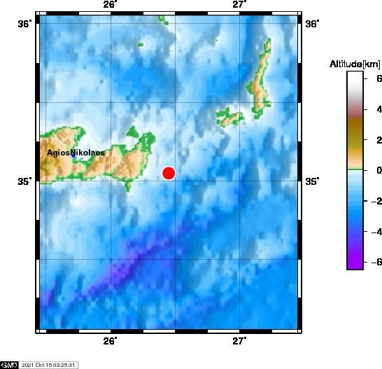 Το ακριβές επίκεντρο τη δόνησης εντοπίζεται στα 48 χλμ. ανατολικά του Παλαικάστρου Λασιθίου.