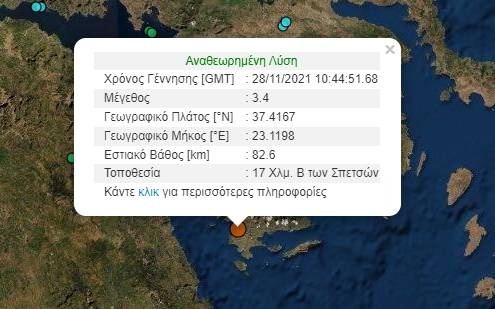 Σεισμός 3,4 Ρίχτερ σημειώθηκε πριν από λίγο βόρεια των Σπετσών.