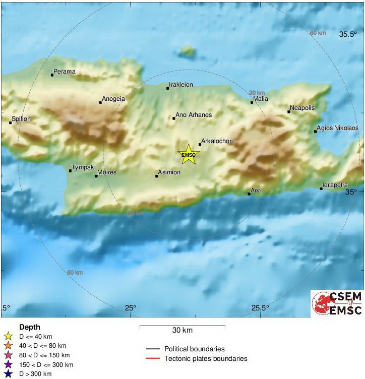 Σεισμός Τώρα: Νέος μετασεισμός στην περιοχή του Αρκαλοχωρίου, στο Ηράκλειο Κρήτης
