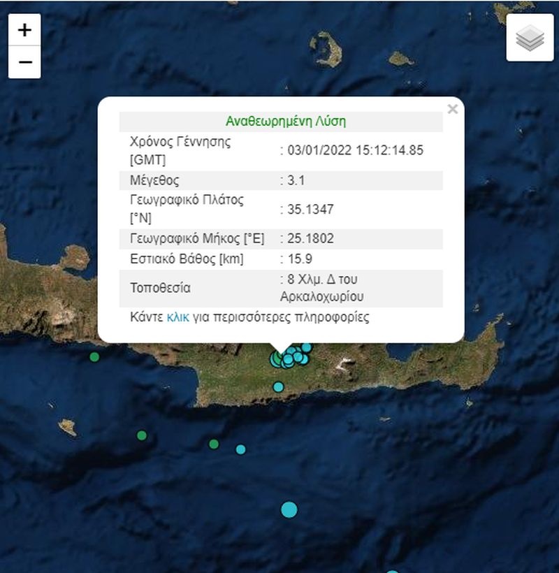 Σεισμός 3,1 Ρίχτερ στο Αρκαλοχώρι της Κρήτης - Δεν αναφέρθηκαν ζημιές