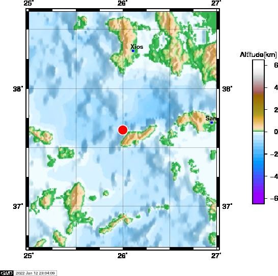H αναθεωρημένη λύση του Γεωδυναμικού Ινστιτούτου του Αστεροσκοπείου Αθηνών δίνει το σεισμό στα 3,4 Ρίχτερ, με εστιακό βάθος τα 7,2 χλμ., και επίκεντρο τα 21 χλμ. βορειοδυτικά της Ικαρίας.