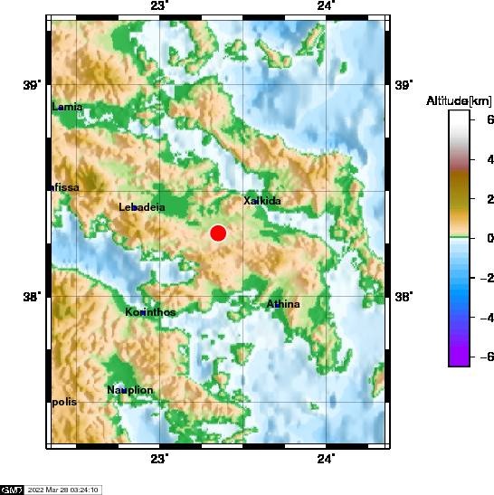 Το ακριβές επίκεντρο τη δόνησης εντοπίζεται στα 5 χλμ. ανατολικά της Θήβας.