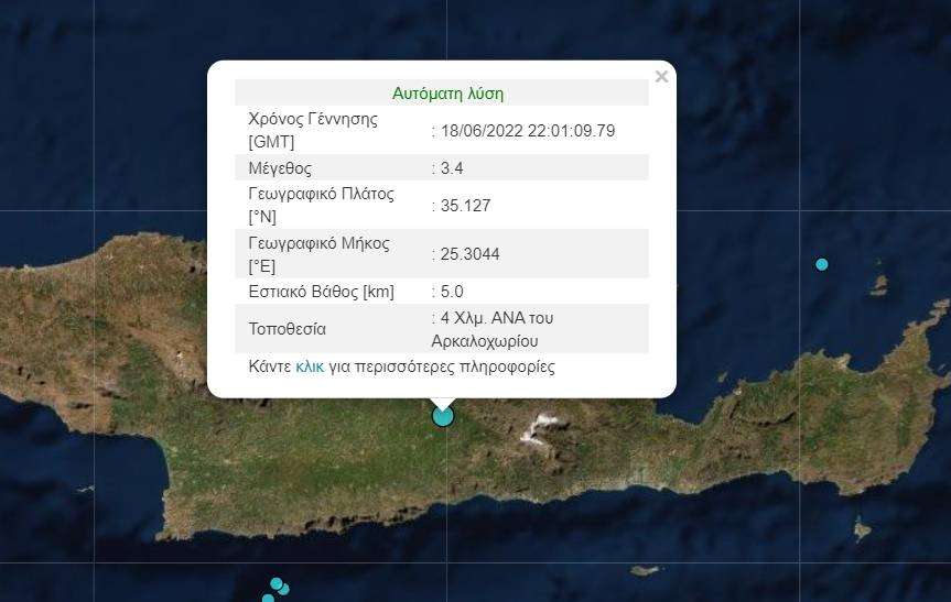 Σεισμική δόνηση 3,4 Ρίχτερ στο Αρκαλοχώρι