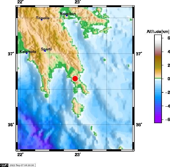 H αναθεωρημένη λύση του Γεωδυναμικού Ινστιτούτου του Αστεροσκοπείου Αθηνών δίνει το σεισμό στα 3,6 Ρίχτερ, με εστιακό βάθος τα 15 χλμ., και επίκεντρο τα 9 χλμ. δυτικά της Μονεμβασιάς.