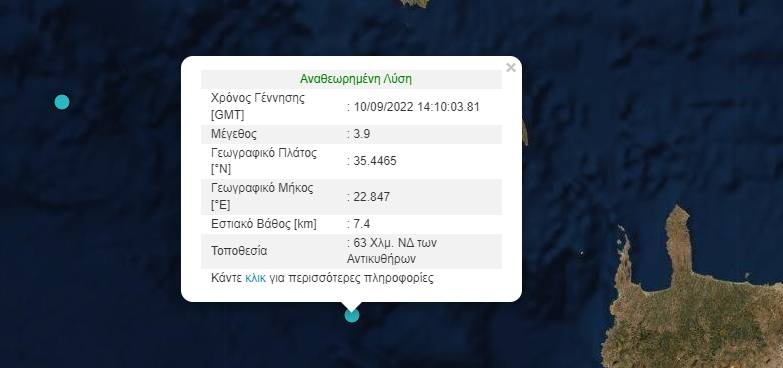 Σεισμός τώρα ανάμεσα σε Αντικύθηρα και Χανιά – Ρηχό εστιακό βάθος