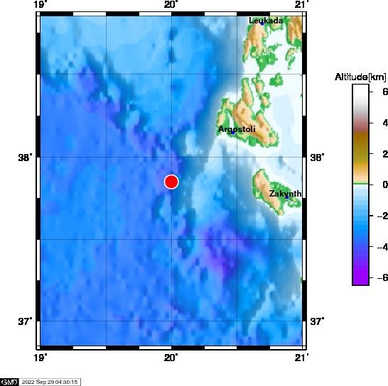 Σεισμός Τώρα: Ασθενής σεισμική δόνηση μεγέθους 3,7 βαθμών της κλίμακας Ρίχτερ, σύμφωνα με την προκαταρκτική λύση του Ευρωπαϊκού - Μεσογειακού Σεισμολογικού Ινστιτούτου (EMSC), σημειώθηκε το πρωί της Πέμπτης (29/9), στις 07:01, σε υποθαλάσσια περιοχή του Ιονίου, κοντά σε Κεφαλονιά και Ζάκυνθο.