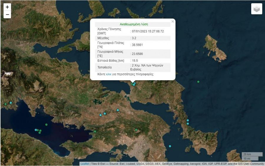 Μια ακόμα δόνηση ταρακούνησε τους κατοίκους της Εύβοιας. Σύμφωνα με την αναθεωρημένη λύση του Γεωδυναμικού Ινστιτούτου Αθηνών, ο σεισμός ήταν 3,2 Ρίχτερ και είχε επίκεντρο μόλις 2 χιλιόμετρα νοτιοανατολικά της πόλης των Ψαχνών.