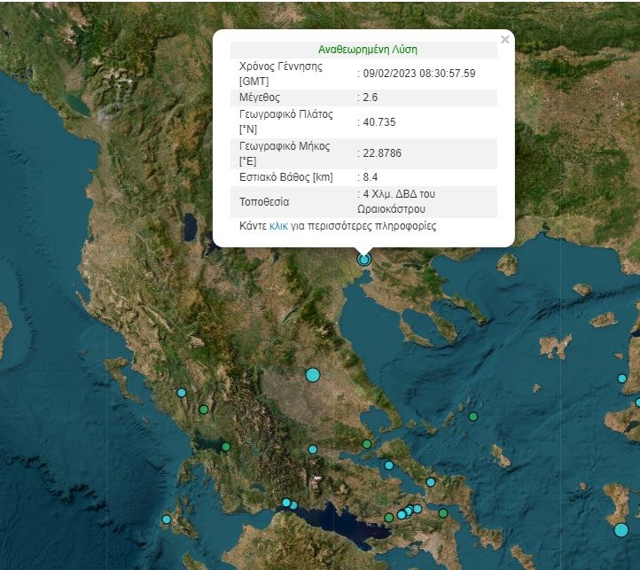 Σεισμός 2,6 Ρίχτερ το πρωί της Πέμπτης (9/2) στη Βόρεια Ελλάδα, αισθητός και στη Θεσσαλονίκη.