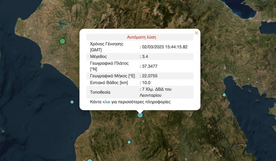 Το επίκεντρο του σεισμού σύμφωνα με την αυτόματη λύση του Γεωδυναμικού Ινστιτούτου ήταν 7 χιλιόμετρα ΔΒΔ του Λεονταρίου.