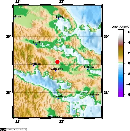 H αυτόματη λύση του Γεωδυναμικού Ινστιτούτου του Αστεροσκοπείου Αθηνών δίνει το σεισμό στα 3,7 Ρίχτερ, με εστιακό βάθος τα 5 χλμ, και επίκεντρο 10 χλμ. νοτιοδυτικά της Αταλάντης.