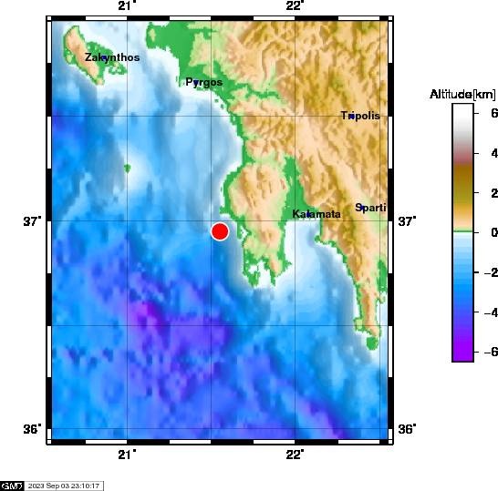 Σεισμός Τώρα: Ασθενής σεισμική δόνηση μεγέθους 3,3 βαθμών της κλίμακας Ρίχτερ, σύμφωνα με την αυτόματη λύση του Ευρωπαϊκού - Μεσογειακού Σεισμολογικού Ινστιτούτου (EMSC), σημειώθηκε στις 02:02 μετά τα μεσάνυχτα (Δευτέρα 4/9), σε υποθαλάσσια περιοχή, κοντά στις δυτικές ακτές της Μεσσηνίας.
