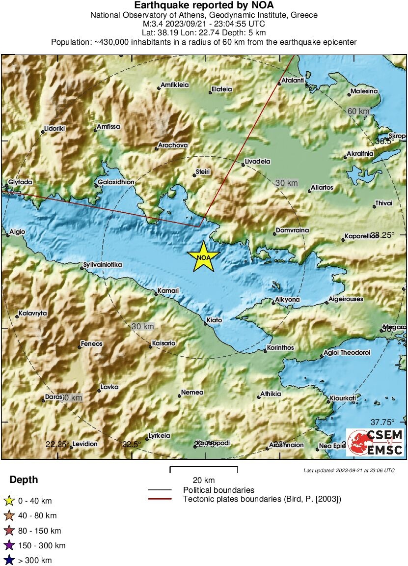 Το εστιακό βάθος του σεισμού, σύμφωνα με την πρώτη εκτίμηση του EMSC, υπολογίζεται στα 5 χλμ.