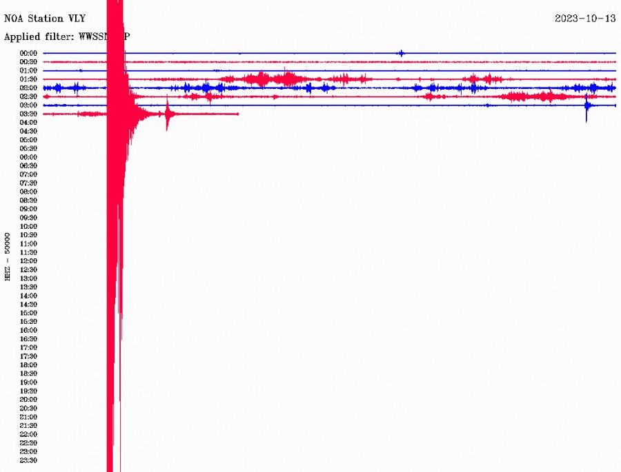 Δείτε στη gallery το σεισμό, όπως τον κατέγραψε ο σεισμογράφος του Σεισμολογικού Δικτύου του Γεωδυναμικού Ινστιτούτου του Εθνικού Αστεροσκοπείου Αθηνών, που είναι τοποθετημένος στη Βούλα Αττικής.