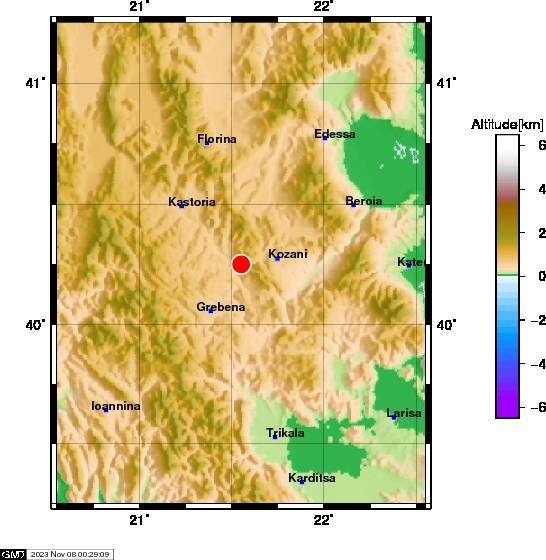 Το ακριβές επίκεντρο της δόνησης εντοπίζεται στα 7 χλμ. δυτικά - νοτιοδυτικά από τη Σιάτιστα.