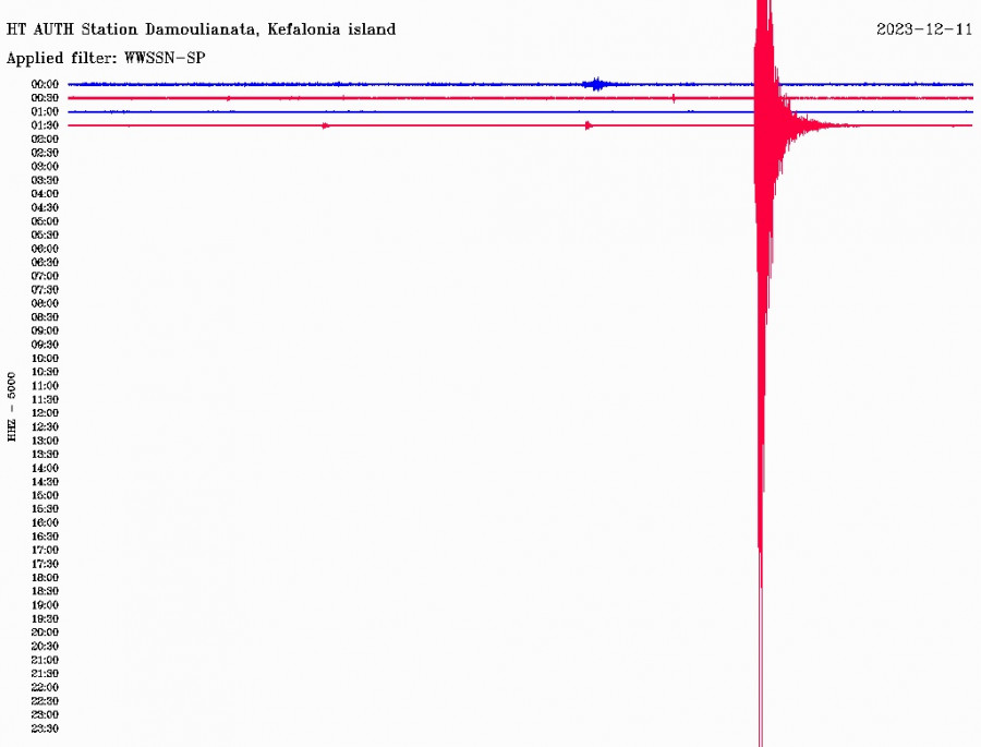 Δείτε το σεισμό, όπως τον κατέγραψε ο σεισμογράφος του Σεισμολογικού Δικτύου του τομέα Γεωφυσικής, του Αριστοτέλειου Πανεπιστημίου Θεσσαλονίκης, που είναι τοποθετημένος Δαμουλιανάτα της Κεφαλονιάς.