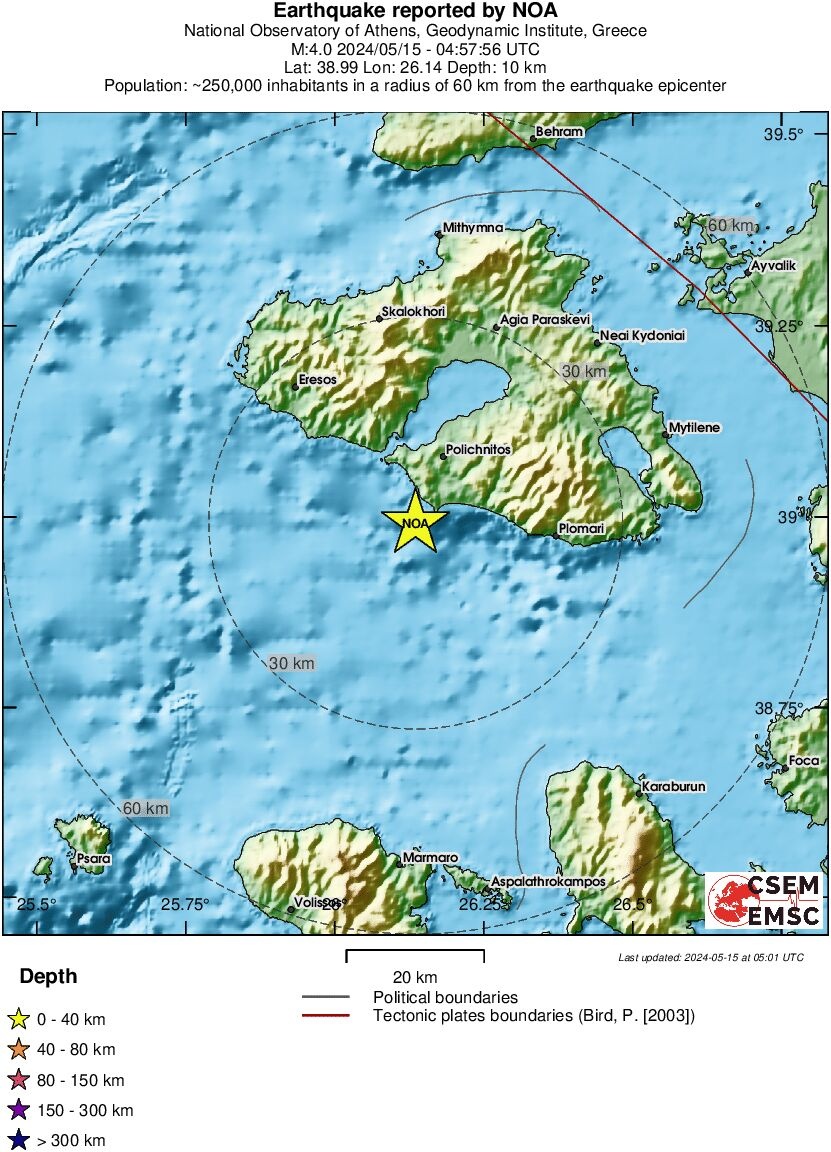Σεισμός μεγέθους 4 Ρίχτερ σημειώθηκε στις 08:00 το πρωί, στα ανοιχτά της Μυτιλήνης.