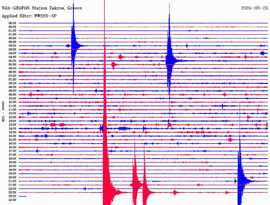 Δείτε το σεισμό, όπως τον κατέγραψε ο σεισμογράφος του Σεισμολογικού Δικτύου του Γεωδυναμικού Ινστιτούτου του Εθνικού Αστεροσκοπείου Αθηνών, που είναι τοποθετημένος στη Ζάκρο.