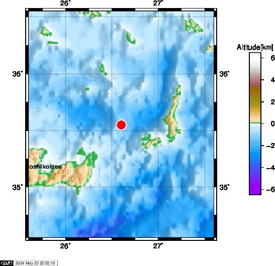 H αναθεωρημένη λύση του Γεωδυναμικού Ινστιτούτου του Αστεροσκοπείου Αθηνών δίνει το σεισμό στα 4 Ρίχτερ, με εστιακό βάθος τα 3,6 χλμ., και επίκεντρο τα 33 χλμ. βορειοδυτικά της Κάσου.