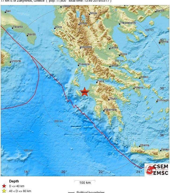 Σεισμός τώρα: Σεισμική δόνηση μεγέθους 4,5 βαθμών της κλίμακας Ρίχτερ σημειώθηκε στις 13:49 το μεσημέρι της Κυριακής (17/03) ανοιχτά της Ζακύνθου.