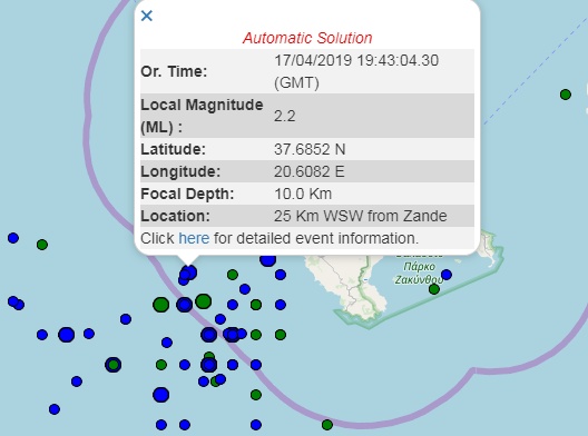 Νέα σεισμική δόνηση 3,7 βαθμών της κλίμακας Ρίχτερ σημειώθηκε στις 22:27 στο θαλάσσιο χώρο ανοιχτά της Ζακύνθου.