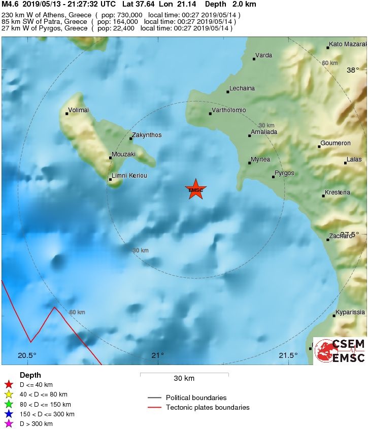 Από την πλευρά του, το Αμερικάνικο Γεωλογικό Κέντρο (USGS), κατέγραψε το σεισμό στα 4,5 Ρίχτερ, με εστιακό βάθος τα 10χλμ. και επίκεντρο και 27χλμ. νοτιοδυτικά του Πύργου.