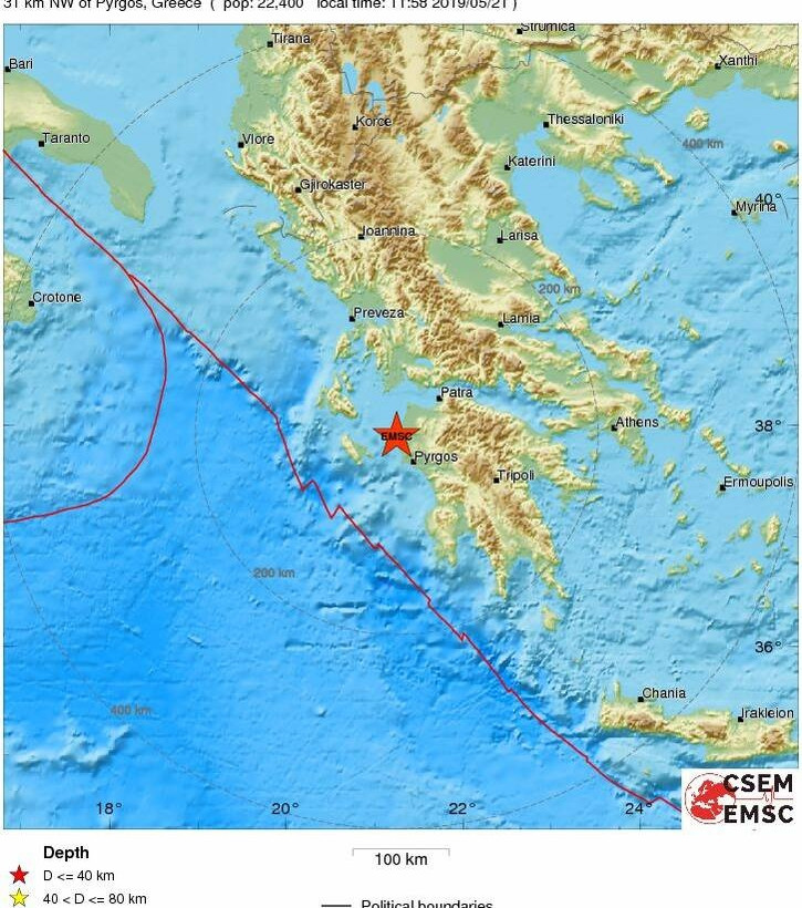 Σεισμός σημειώθηκε σήμερα Τρίτη (21/05), με επίκεντρο σε περιοχή μεταξύ της Κυλλήνης και της Ανδραβίδας, στην Ηλεία.