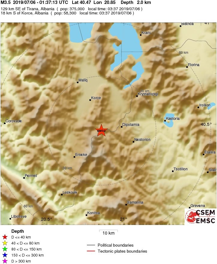 Σεισμός Τώρα: Ασθενής σεισμική δόνηση μεγέθους 3,5 βαθμών της κλίμακας Ρίχτερ, σύμφωνα με την αυτόματη προκαταρκτική λύση του Ευρωπαϊκού - Μεσογειακού Σεισμολογικού Ινστιτούτου (EMSC), σημειώθηκε τα ξημερώματα του Σαββάτου (6/7) στις 04:37, σε περιοχή κοντά στην Καστοριά, στα ελληνοαλβανικά σύνορα.