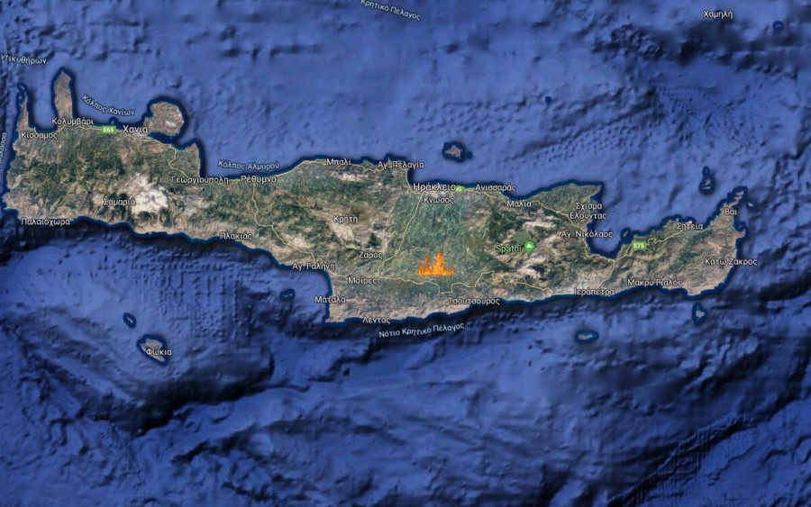 Φωτιά ΤΩΡΑ στο Ηράκλειο Κρήτης - Υπό μερικό έλεγχο η πυρκαγιά στο Τεφέλι (χάρτης)