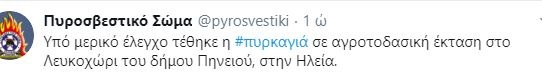 Η Φωτιά που ξέσπασε σήμερα (13/8/2019) σε αγροτοδασική έκταση στο Λευκοχώρι του δήμου Πηνειού, στην Ηλεία, τέθηκε πριν από λίγο, υπό μερικό έλεγχο.