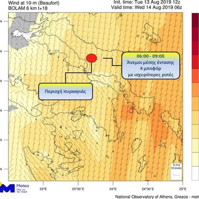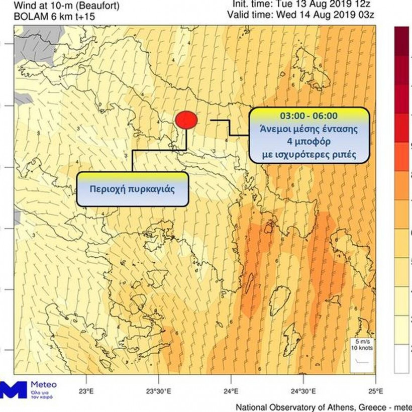 Σύμφωνα με τα βραδινά προγνωστικά στοιχεία της Τρίτης 13/08, οι βόρειοι άνεμοι που πνέουν στις περιοχές όπου μαίνεται η μεγάλη φωτιά στην Εύβοια, κατά τη διάρκεια της νύχτας προς Τετάρτη, θα παρουσιάσουν ενίσχυση.