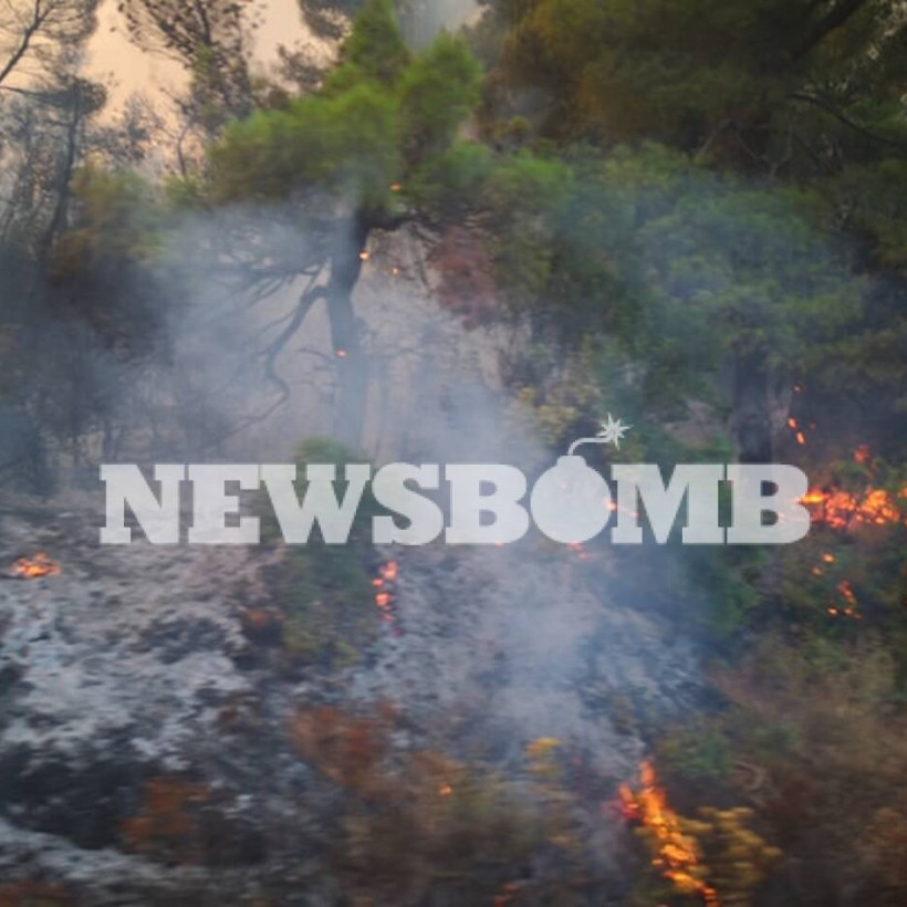 Η ισχύς των ανέμων ξεπέρασε τα 8 μποφόρ. Η φωτιά επεκτάθηκε στην πυκνή βλάστηση του πευκοδάσους.