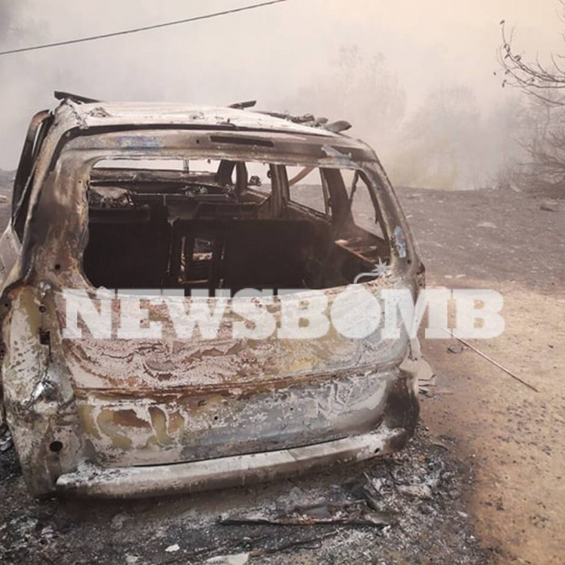 Όπως θα δείτε και στις φωτογραφίες του Newsbomb.gr, η πύρινη λαίλαπα έχει κάψει αυτοκίνητα και έχει προκαλέσει καταστροφές σε αρκετά σπίτια.