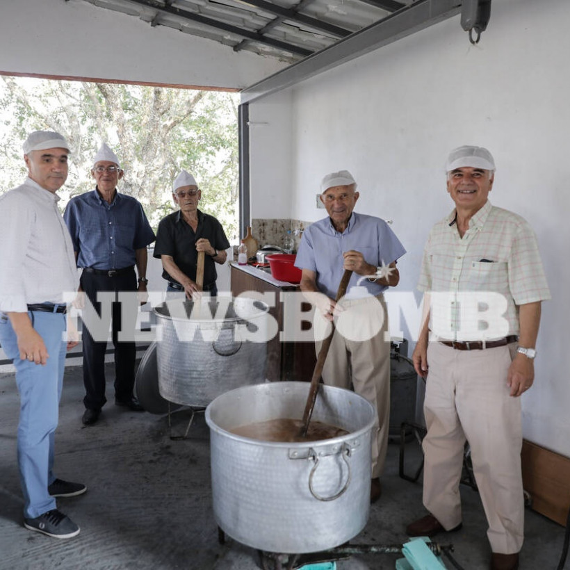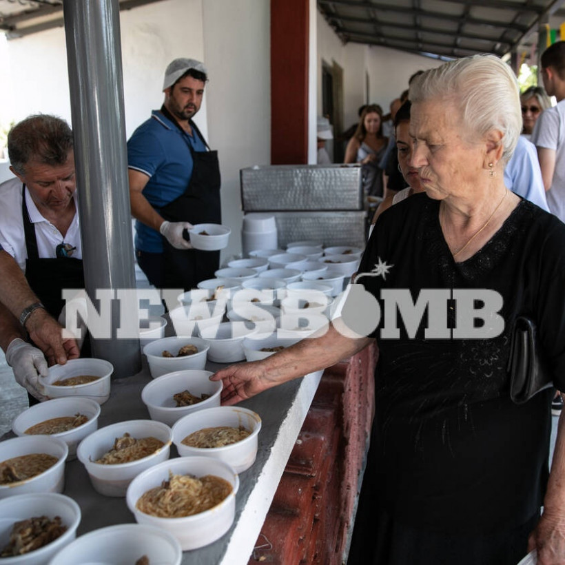 Περίπου τριακόσιοι Κουμαριώτες και Αγρελιώτες μαζεύτηκαν σε αυτό το αντάμωμα για να παρακολουθήσουν τη θεία λειτουργία και μετά την αρτοκλασία, να καθίσουν στα τραπέζια όπου σερβίρεται προβατίνα με κριθαράκι και κρασί.