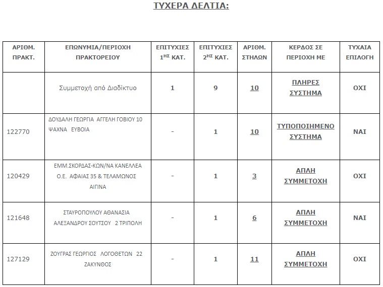 Πού κατατέθηκαν τα τυχερά δελτία: