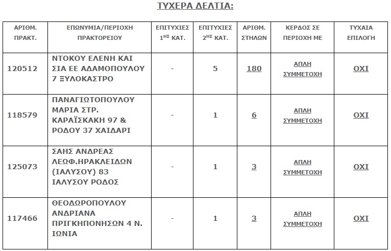 Πού παίχτηκαν τα τυχερά δελτία