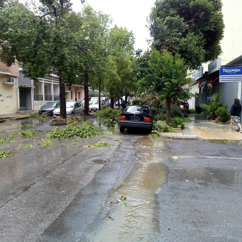 Παράλληλα, αρκετά δέντρα έχουν πέσει ενώ από την μανία του ανέμου δεν γλύτωσαν ούτε βιτρίνες καταστημάτων.
