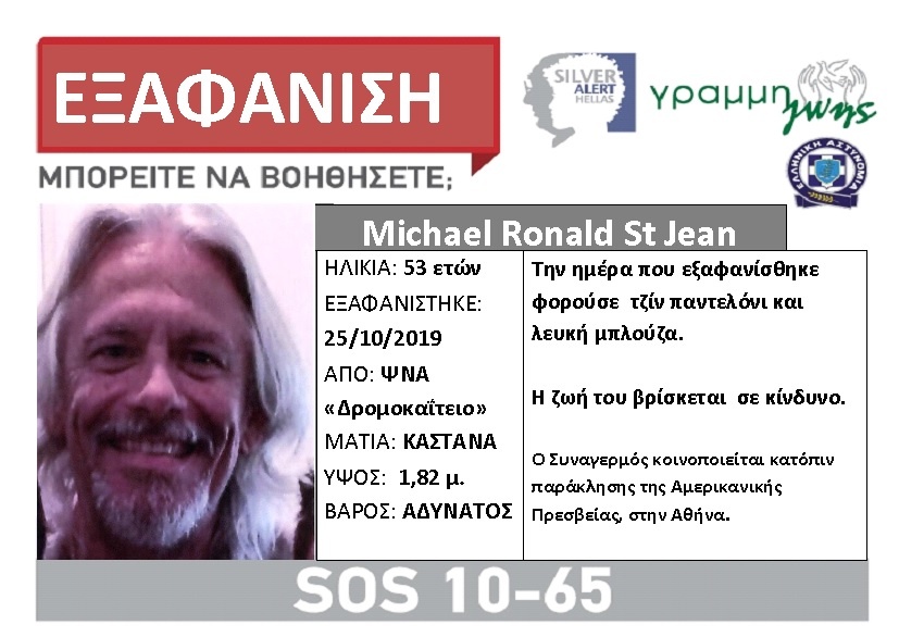 Silver Alert έχει εκδοθεί μετά την εξαφάνιση του 53χρονου Michael Ronald St Jean, από το Ψυχιατρικό Νοσοκομείο Αττικής «Δρομοκαΐτειο», την Παρασκευή 25 Οκτωβρίου.