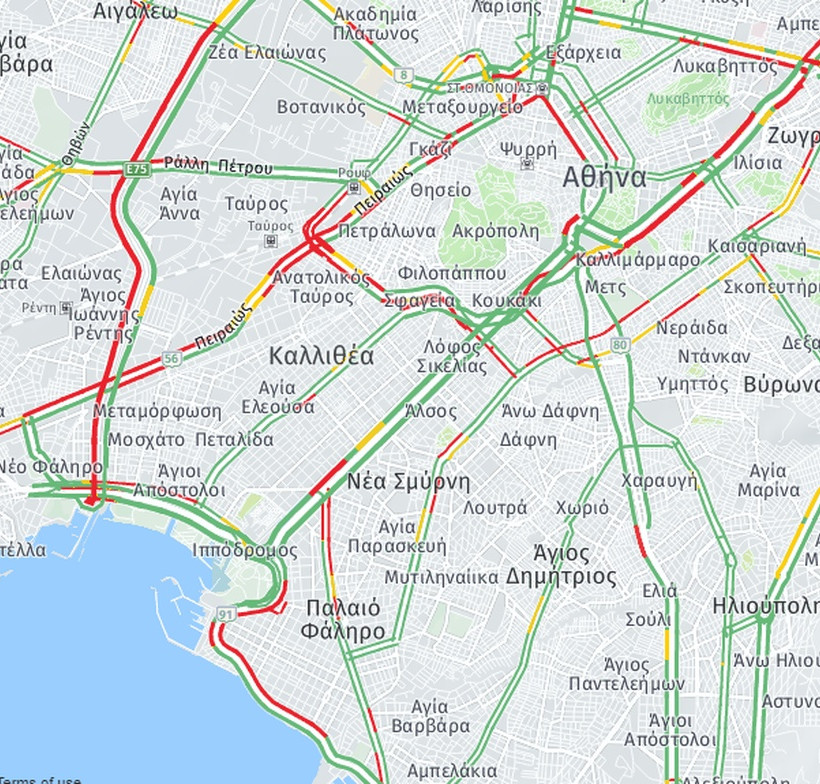 Υπομονή απαιτούν επίσης η Βουλιαγμένης στο ρεύμα προς Αθήνα, η Ποσειδώνος και στα δύο ρεύματα, η λεωφόρος Αθηνών, η Κατεχάκη κυρίως στο ρεύμα προς Αθήνα, η Πατησίων, η Αχαρνών.