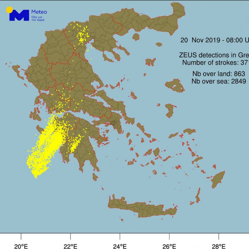 Η βροχή, πάντως, που έπεσε στα νησιά του Ιονίου ήταν δυνατή, ενώ ισχυρές βροχές και σποραδικές καταιγίδες αναμένεται να πλήξουν και σήμερα τις ίδιες περιοχές, σε μεγαλύτερη ακτίνα.