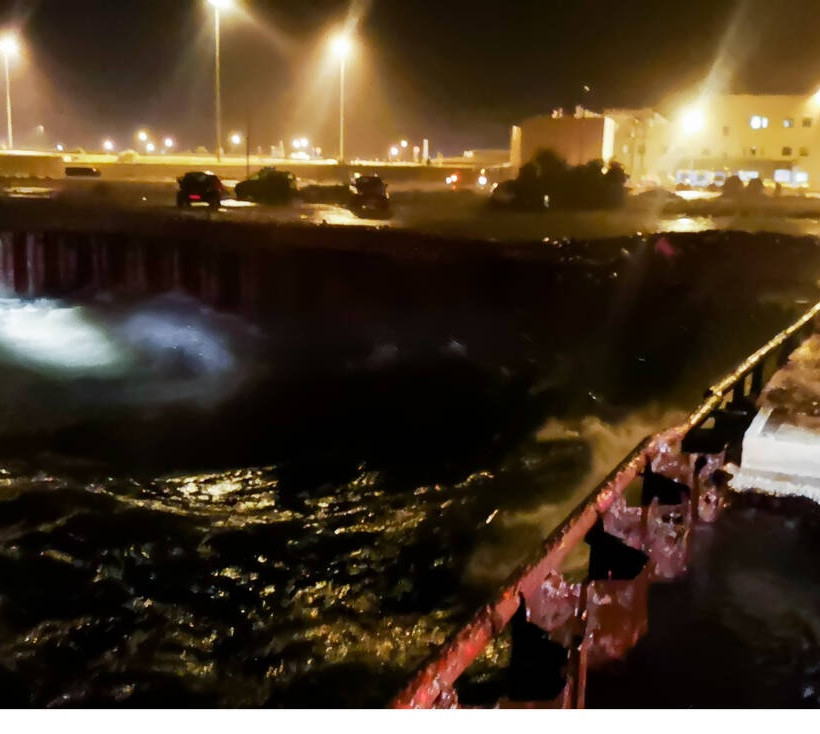 Το πρωί της Δευτέρας (25/11/2019) δύτες "έπεσαν" στη θάλασσα προκειμένου να δέσουν το σκάφος που ανετράπη από τους ισχυρούς ανέμους.
