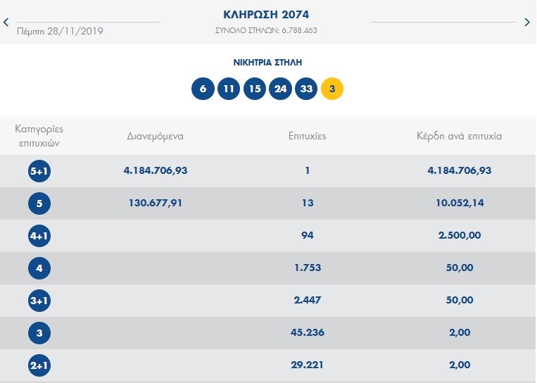Μπορείτε να δείτε τους τυχερούς αριθμούς των κληρώσεων μέχρι και τις 28/11/2019, σύμφωνα με την επίσημη ιστοσελίδα του ΟΠΑΠ.