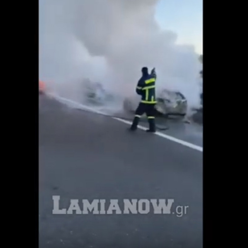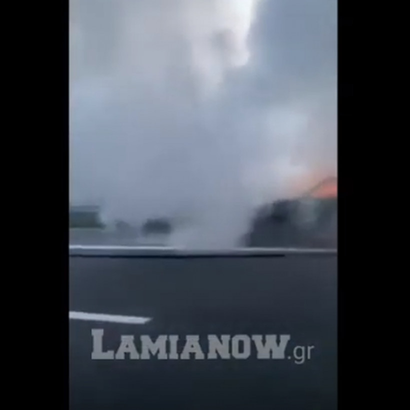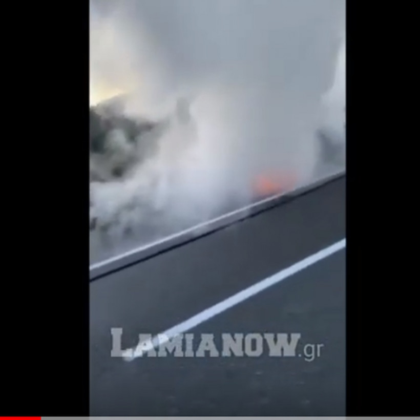 Πανικός στην Εθνική Οδό Αθηνών - Λαμίας: Αυτοκίνητο τυλίχτηκε στις φλόγες