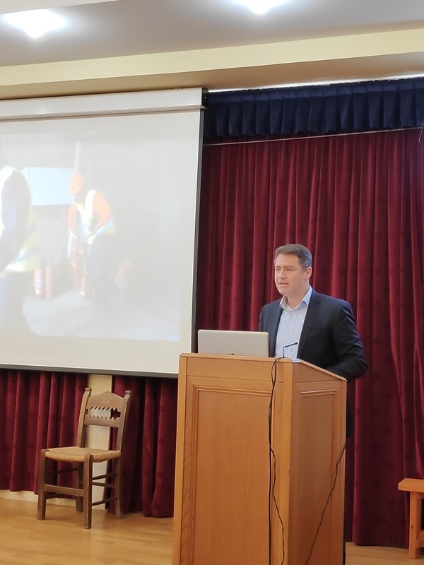 Απο την πλευρά του ο Δρ. Ευθύμιος Λέκκας παρουσίασε το Σχέδιο Διαχείρισης Φυσικών και Τεχνολογικών Κινδύνων στην ευρύτερη περιοχή εγκαταστάσεων του Φο.Δ.Σ.Α Βόρειας Πεδιάδας Α.Ε.