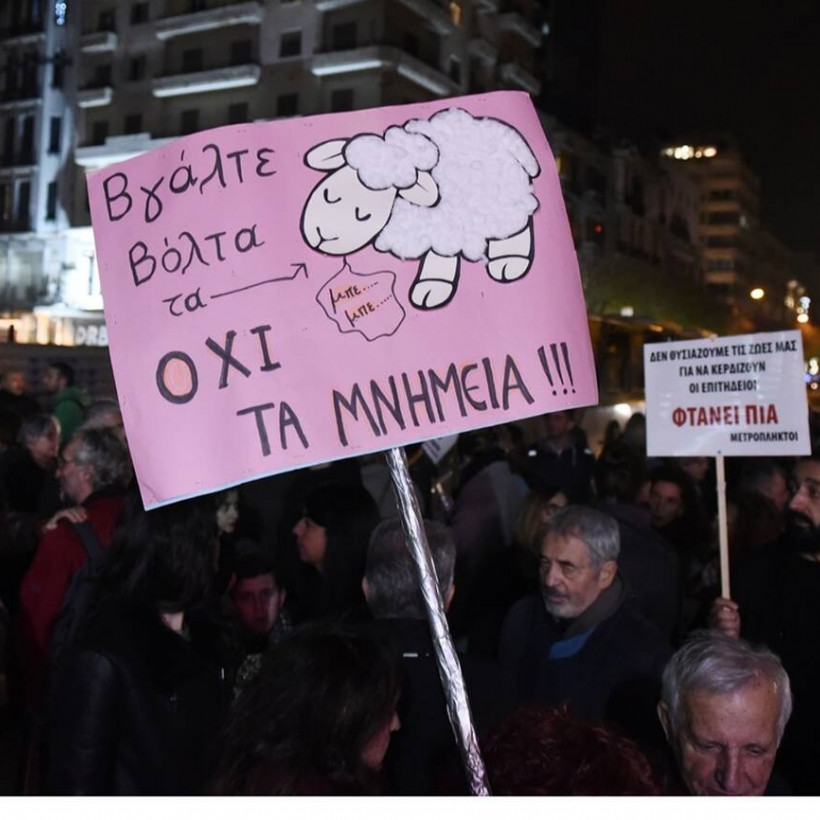 Οι πολίτες κρατούσαν πανό και πλακάτ που έγραφαν μεταξύ άλλων «Βενιζέλου και Εγνατία η δική μας Πομπηία» και «Τα αρχαία δεν πάνε περίπατο», ενώ ξεχωριστό παλμό έδωσε σχήμα κρουστών. Διαδηλωτές σχημάτισαν με ρεσώ τις λέξεις «in situ» (κατά χώραν). Στην κινητοποίηση πήραν μέρος και «μετρόπληκτοι» καταστηματάρχες.