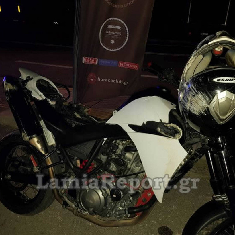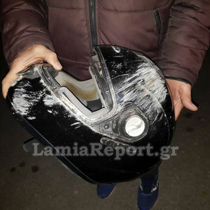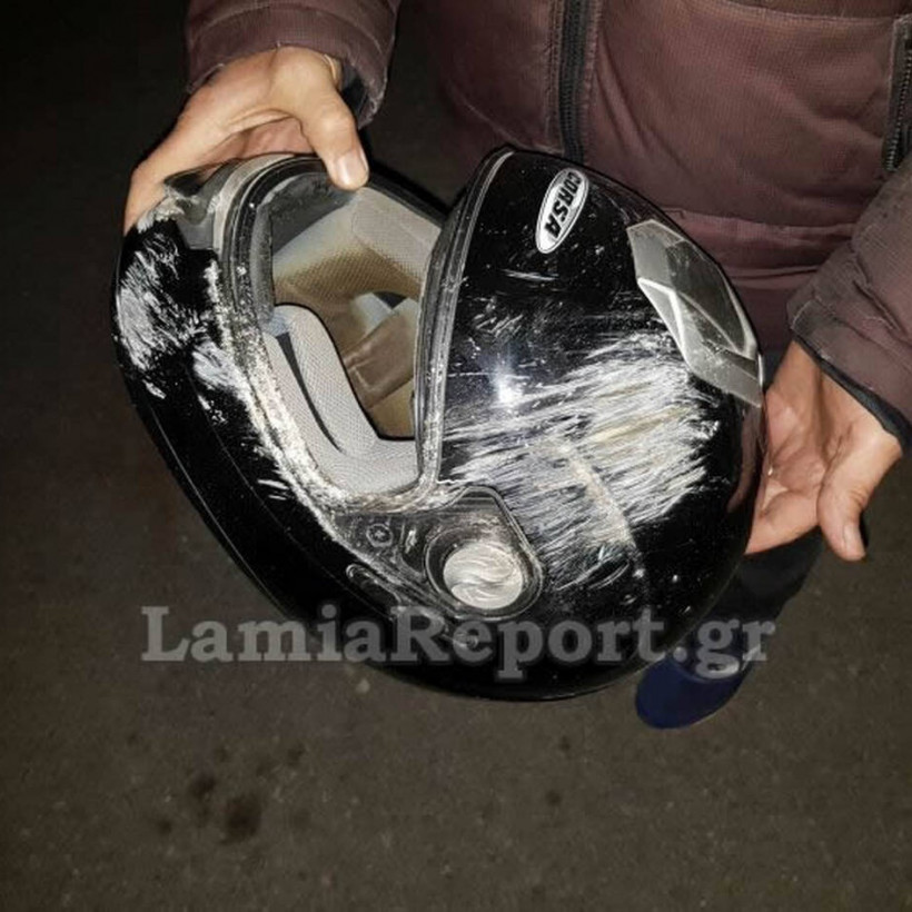 Λαμία: Σοβαρό τροχαίο με μηχανή - Το κράνος του έσωσε τη ζωή (pics)