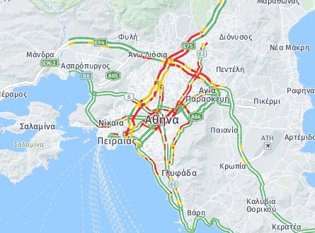 Το κέντρο της Αθήνας είναι σχεδόν απροσπέλαστο καθώς τα αυτοκίνητα κινούνται με μηδενικές ταχύτητες σε Βασιλίσσης Σοφίας (και στα δύο ρεύματα), Σταδίου και Πανεπιστημίου. Ενώ αυξημένη είναι η κίνηση και στη Λεωφόρο Αθηνών και Πειραιώς.