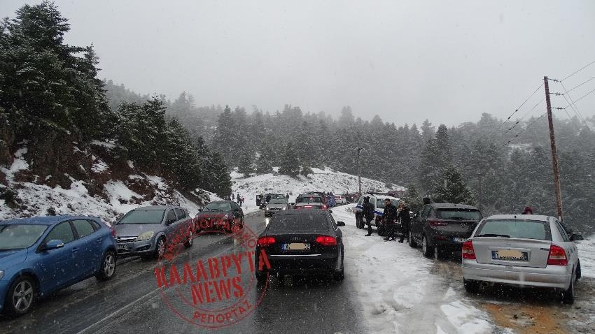 Κυκλοφοριακό χάος στα Καλάβρυτα: Εγκλωβίστηκαν οδηγοί στο δρόμο για το Χιονοδρομικό