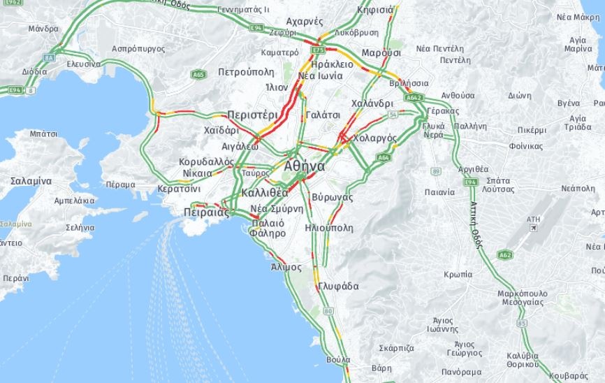 Ταλαιπωρία για τους οδηγούς η μετακίνηση στην Αθήνα και τις γύρω περιοχές, το πρωί της Παρασκευής (07/02) καθώς η κίνηση στους δρόμους γίνεται μετ' εμποδίων.